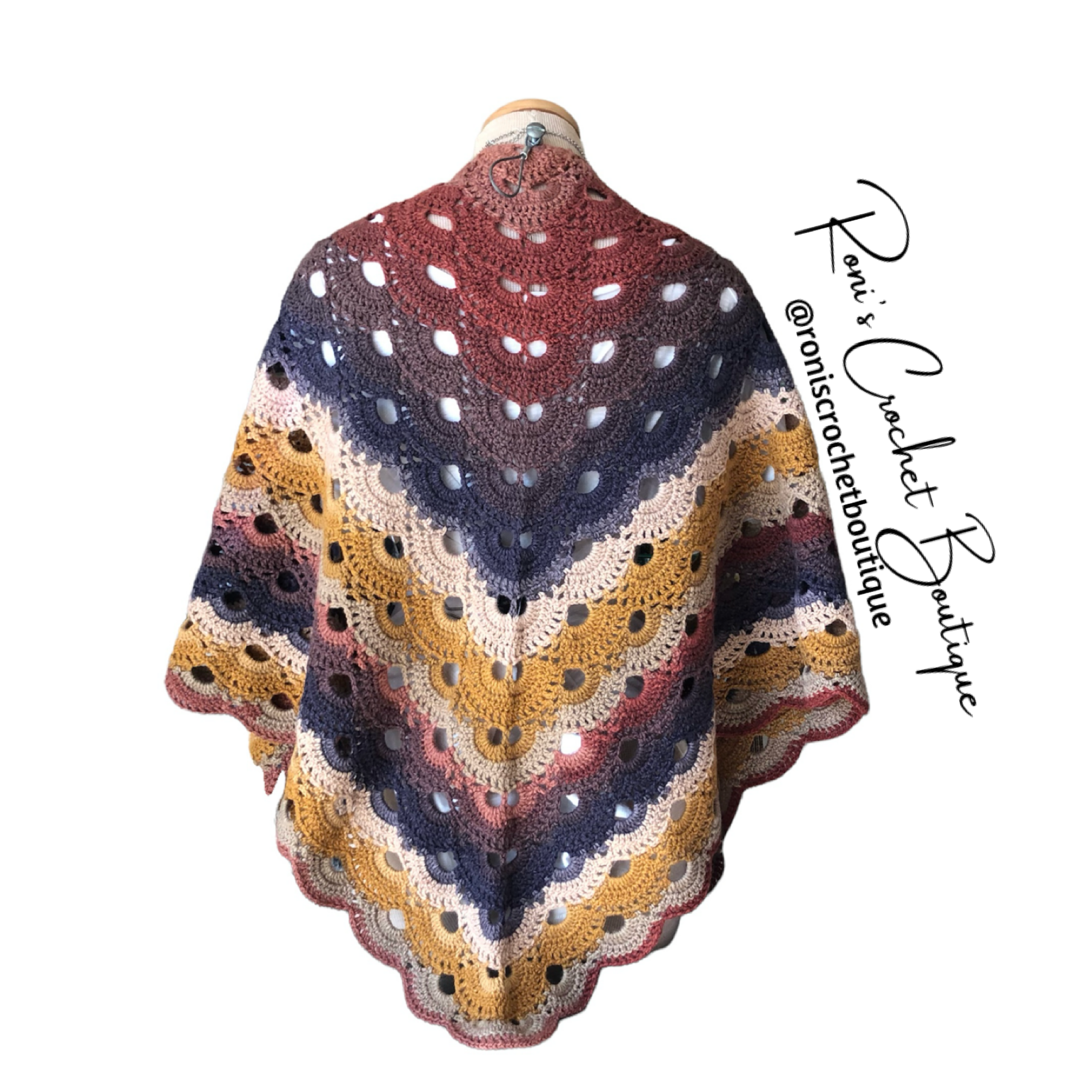 Gold tones set this beautiful, multicolored shawl apart! The warm colors include gold, tan, brown, navy blue, deep mauve, and nude. Great for a night out or add this to your outfit as a layer all year long!